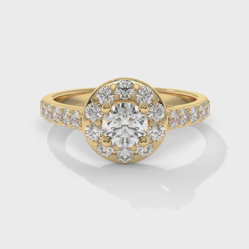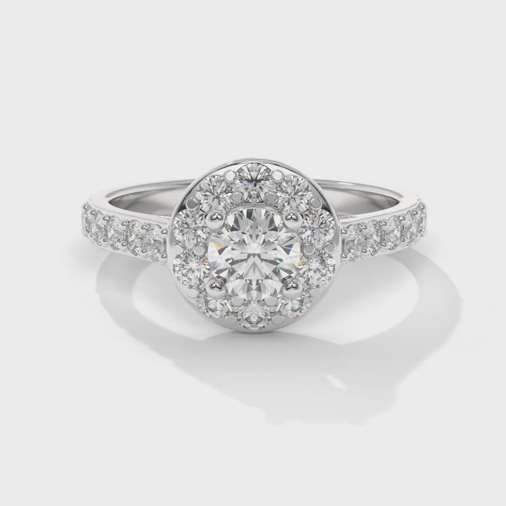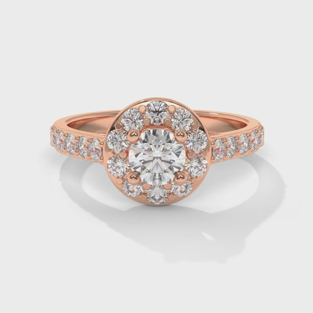 A classic solitaire with a refined halo, designed for balance, symmetry, and everyday elegance.