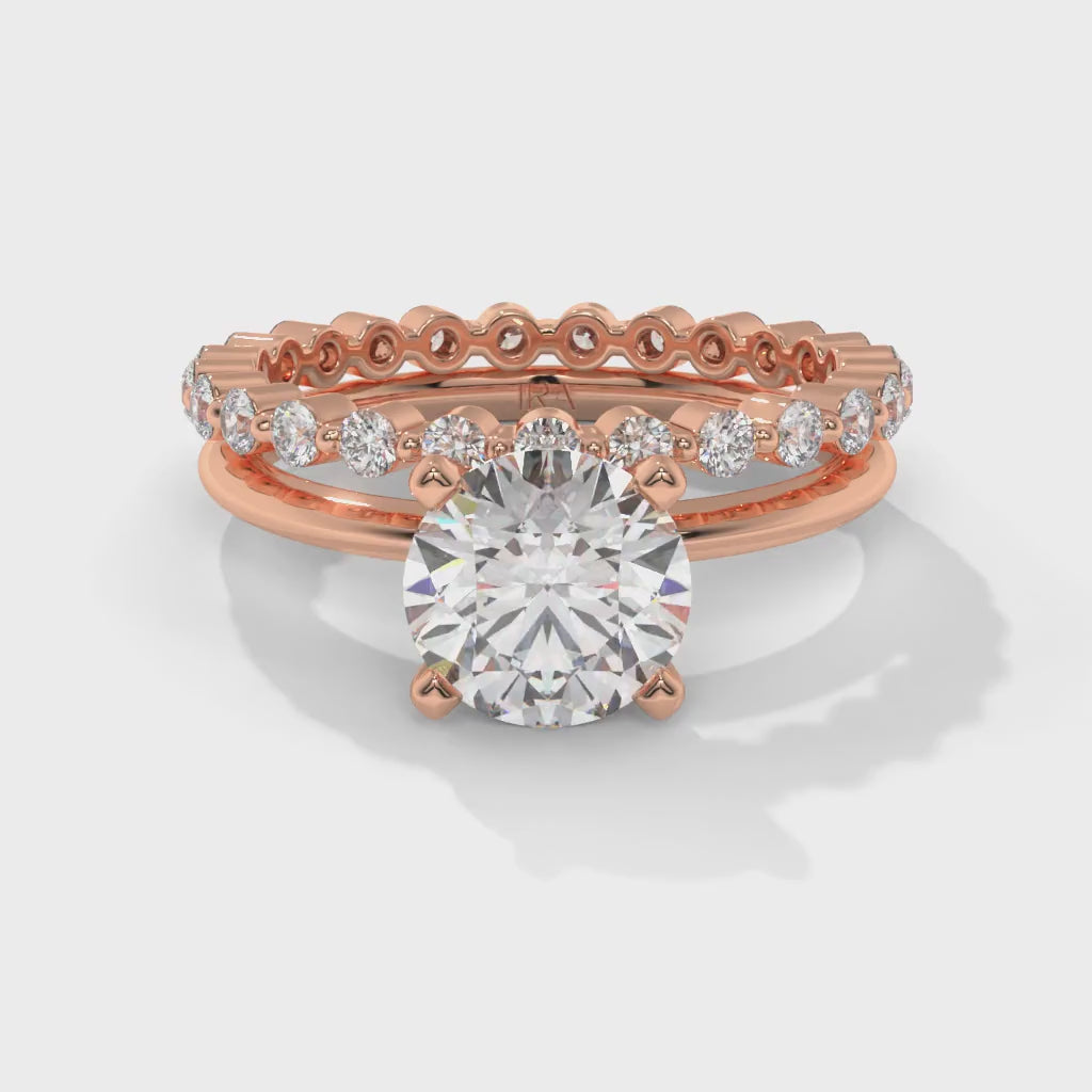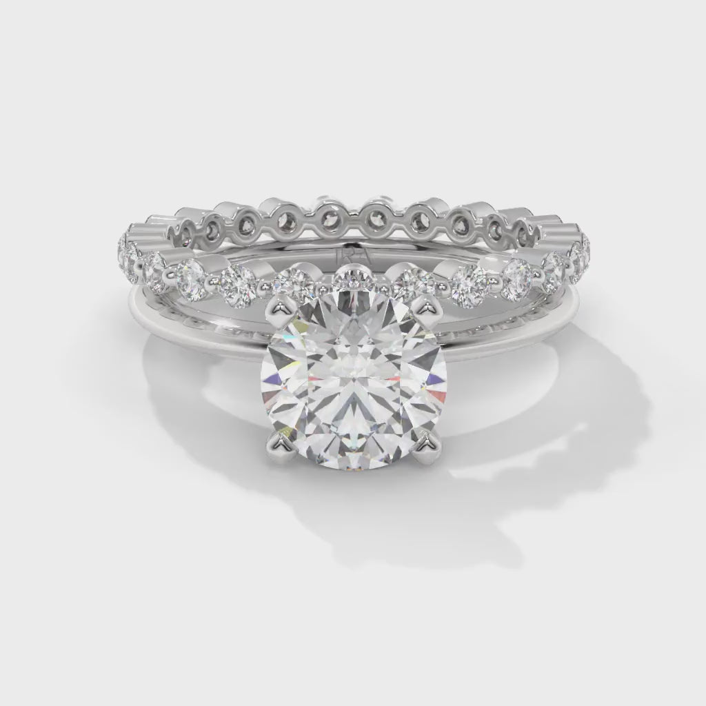 A round solitaire paired with a matching diamond band for a complete, refined look.